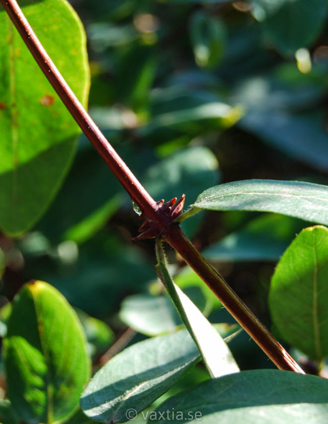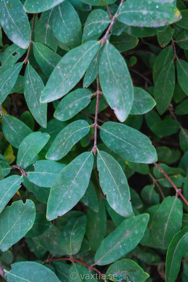Snabbväxande buske med skulpturalt regelbundet grenverk. Fräscha gröna blad med ljusare undersidor. Väldoftande vackert formade blommor som är vita när de slår ut i juni men sedan övergår till guldgult. Bären är först mörkröda med sedan bleknar till transparant och sitter kvar på busken långt in på vintern.