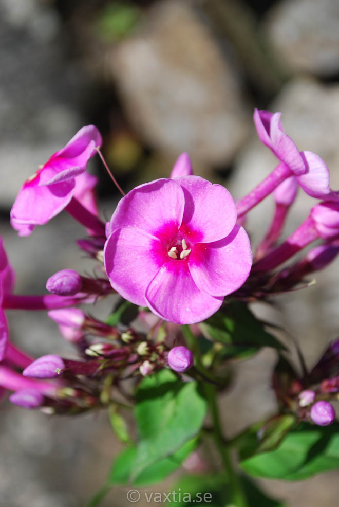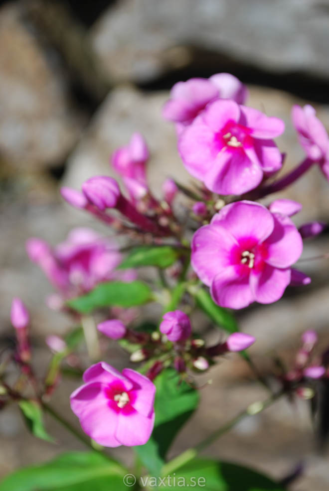 Buskigt upprätt växtsätt. Rosaröda doftande blommor. Blomningen förlängs om vissna blommor avlägsnas.